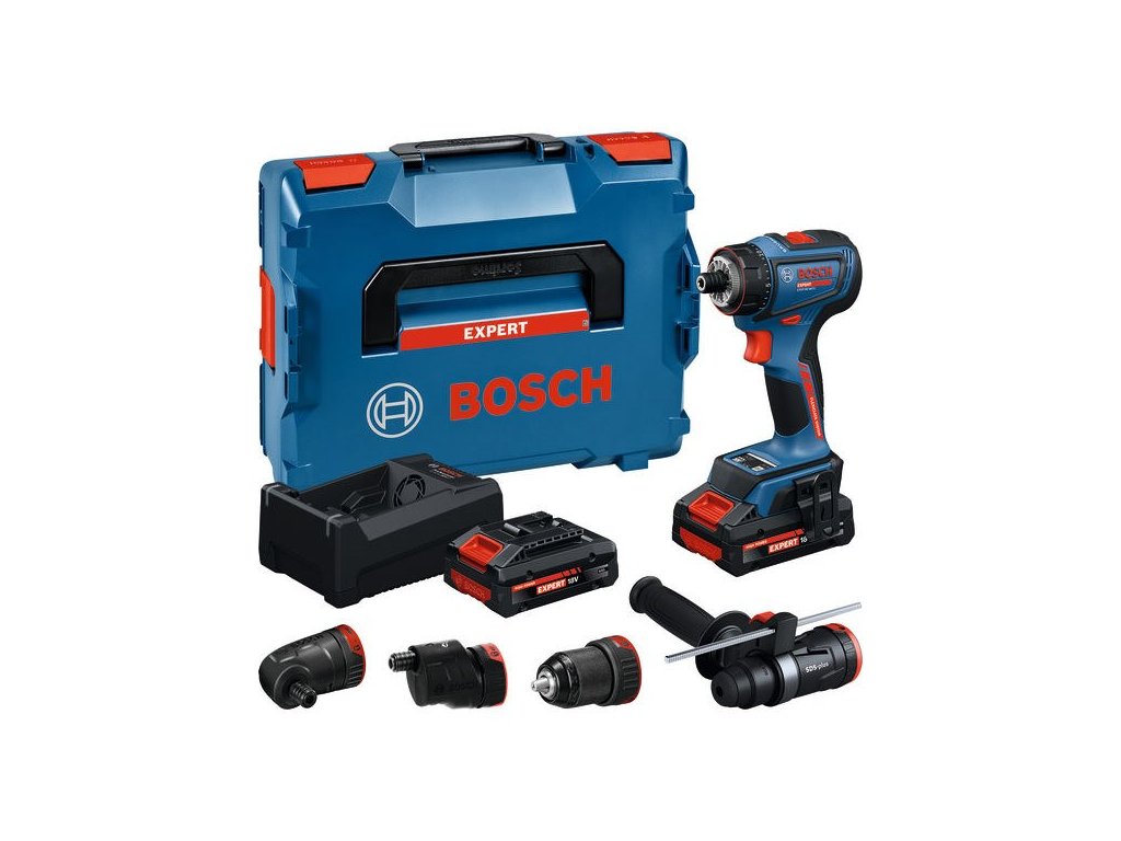 Výkonný EXSR18V-90FC EXPERT nabízí flexibilitu 6 v 1 díky snadno vyměnitelným nástavcům pro vrtání a šroubování. Je součástí všestranného systému Bosch Professional FlexiClick, který se připravuje na různé výzvy na stavbě. Unikátní příklepový nástavec GFA 18-H promění nářadí na vrtací kladivo SDS plus připravené pro vrtání s příklepem do betonu až do Ø 10 mm. Nářadí je dodáváno s pokročilou ochranou: Funkce KickBack Control minimalizuje riziko zranění při zaseknutí bitu. Po dosažení nastavené úrovně krouticího momentu utahování zastaví přesná spojka. Obě funkce lze zapnout a vypnout. FlexiClick omezuje hmotnost, kterou musíte přepravit na stavby. Nástavce FlexiClick mohou nahradit specializovaná nářadí pro příležitostná použití. Systém Bosch Professional FlexiClick System – dokonalé vybavení na profesionální práci.