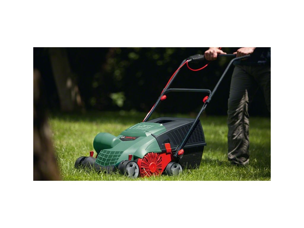 - Silný výkon: Kombinace výkonného 1 100W motoru a nožů z uhlíkové oceli umožňuje rychlou a efektivní vertikutaci bez zasekávání nářadí. Efektivní používání: „Jet-Collect System“ se speciálními průduchy na proudění vzduchu zajišťuje rychlý a efektivní sběr mechu a trávníkové plsti. Praktické použití: Velký 50litrový sběrný koš znamená méně času stráveného vysypáváním. Kompaktní uložení. Výrobek lze složit na pouhých 40 cm na výšku díky dvojitě skládací rukojeti a stohovatelnému sběrnému koši