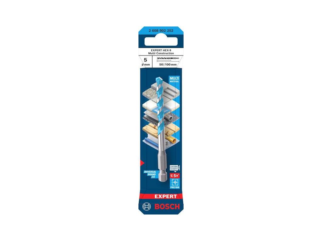 Bosch Vrták EXPERT HEX-9 Multi Construction, 5 × 50 × 100 mm Professional (2608902252)