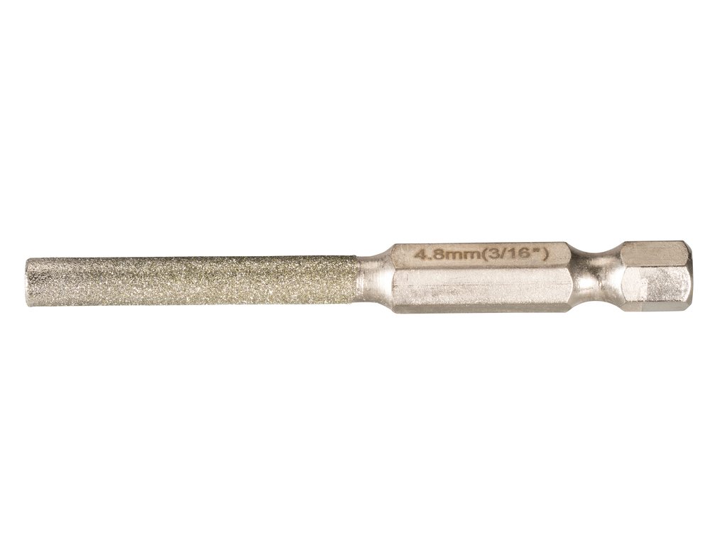 Diamantový pilník pro broušení řetězu v motorové pile pomocí AKU šroubováku. Kulatý pilník 4,8 mm, upnutí 1/4" šestihranná stopka.