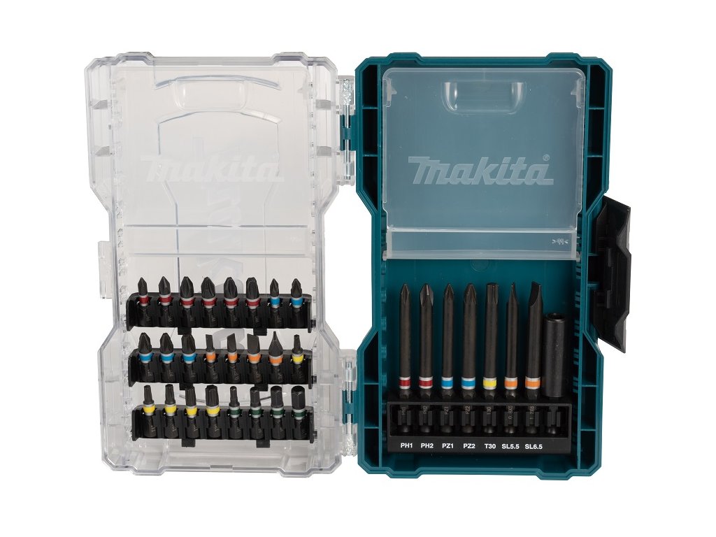 Sada bitů 31 ks obsahuje bity 75 mm: PH1, PH2, PZ0, PZ1, PZ2, SL 0.5 x 3, SL 0.6 x 5, bity 25 mm: PH0, PH1, 3x PH2, PH3, PZ0, PZ1, 2x PZ2, PZ3, SL 0.5 x 3, SL 0.5 x 4, SL 0.8 x 5.5, SL 1.2 x 6.5, T10, T15, T20, T25, T30, HEX3, HEX4, HEX5, HEX6 a magnetický držák 60 mm. Dodáváno v plastové krabičce.
