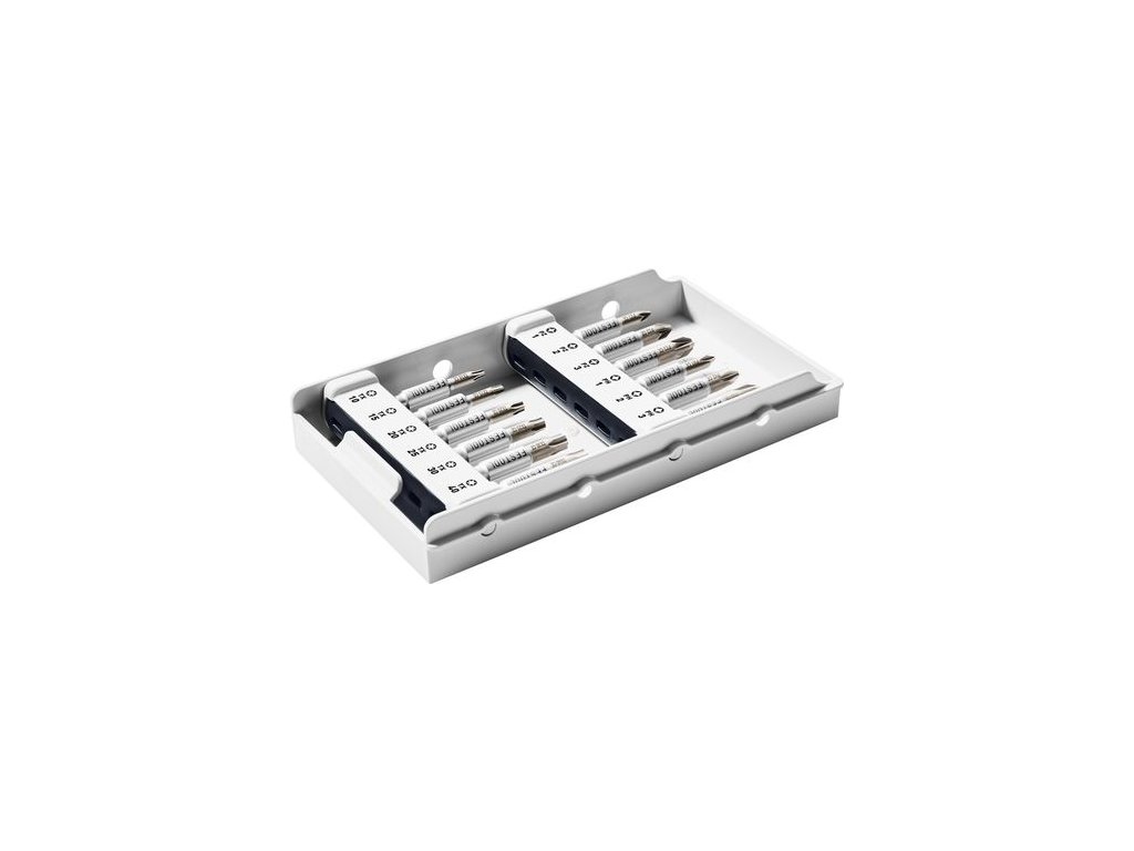 bit PH 1, bit PH 2, bit PH 3, bit PZ 1, bit PZ 2, bit PZ 3, bit TX 10, bit TX 15, bit TX 20, bit TX 25, bit TX 30, bit TX 40, ve vložce do víka, balení pro samoobslužný prodej